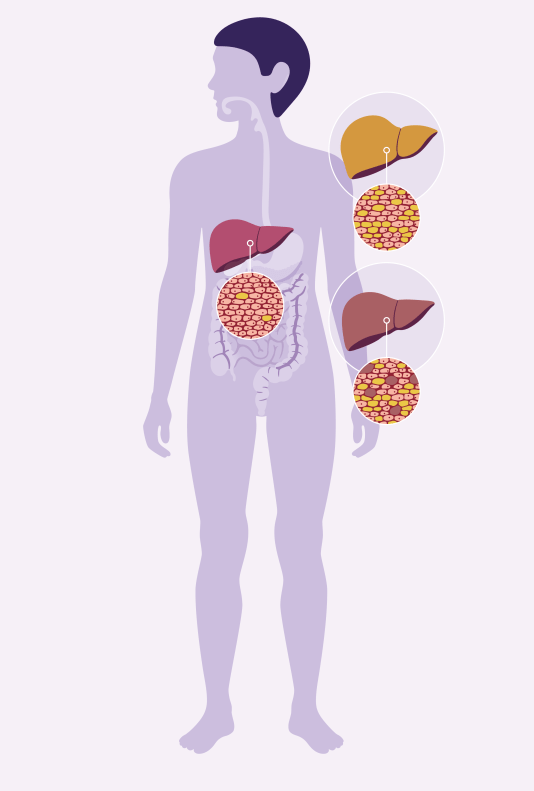 Beeld: van een gezonde lever naar leververvetting (MDL Fonds)